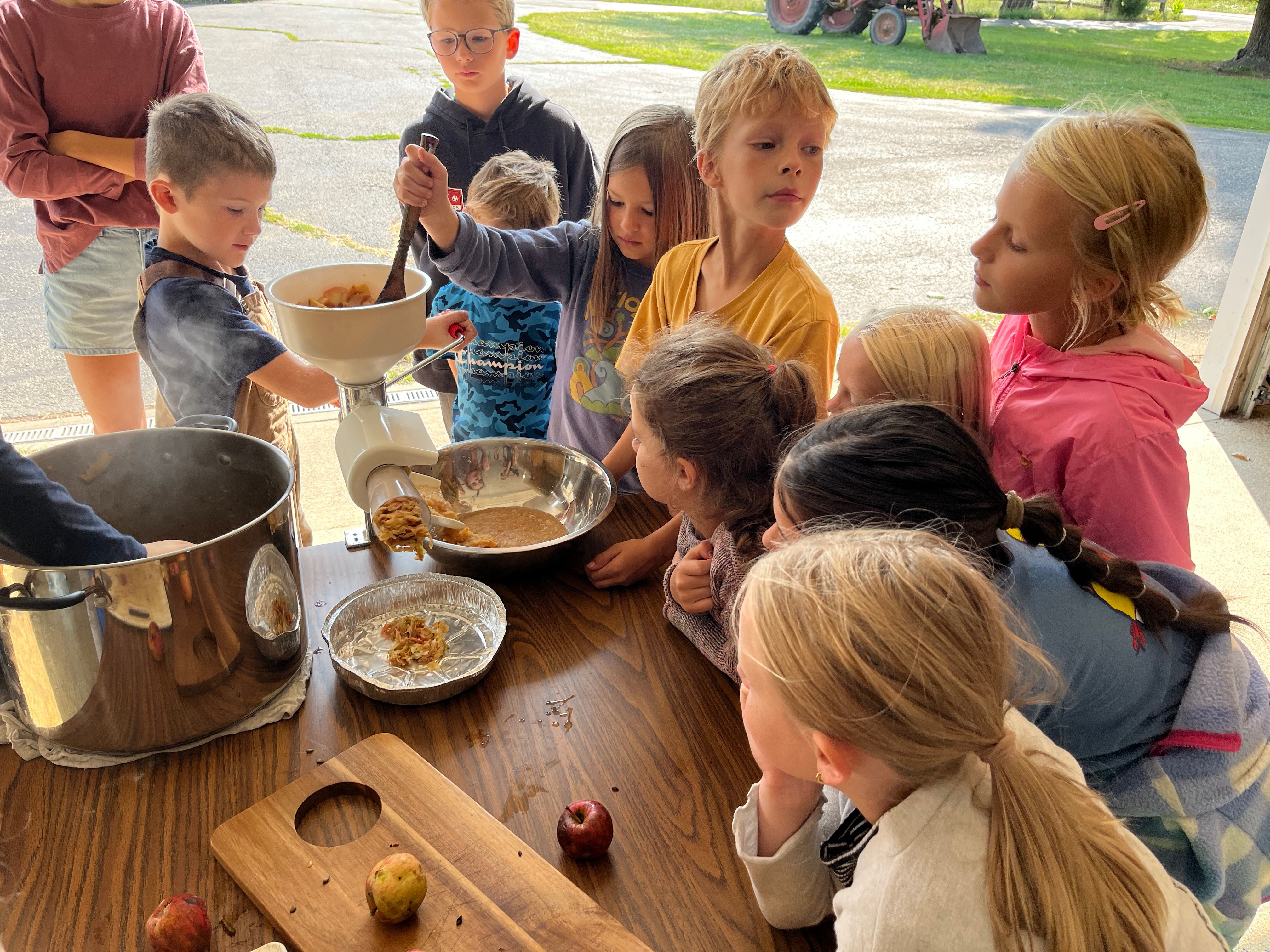Nature walks and journaling are a weekly occurrence for all grades. All students develop as artists and musicians. Students also participate in the life of a working farm as summer moves to fall, winter, and spring. Students have ample time to play with all the content they encounter. Scripture and poetry memorization occur at all levels, culminating in event nights throughout the year for the community to gather and celebrate.